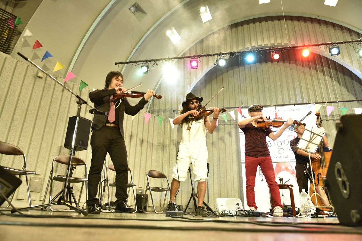 BimBomBam楽団(Ohyama ”B.M.W.” Wataru (tp)、Tajimi “M.J” Tomotaka (vln)、手島大輔 (g)、ヤマトヤスオ (b)、奥田真広(per))