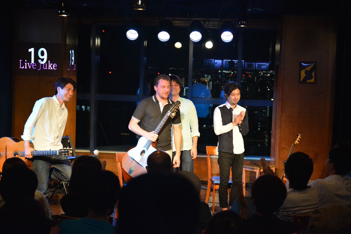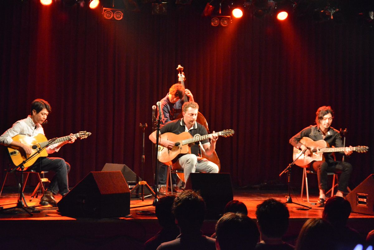 有田純弘アコースティックカルテット(有田純弘 gu、坂野いぶき gu、山田拓斗 vl、クリス・シルバースタイン ba、パトリック・ヌジェ acc)